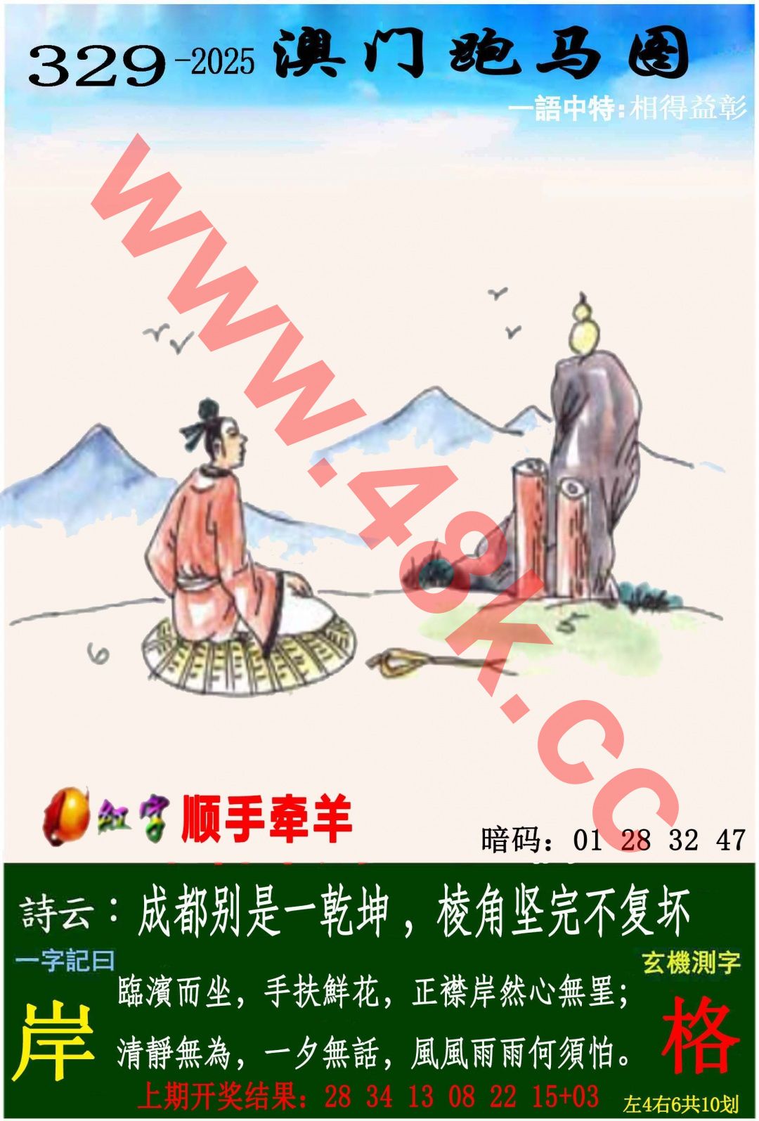 | 322期: ⑥肖 | 马兔龙鼠狗羊 | 羊47中 |